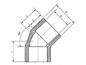 45°彎頭主要連接尺寸(連接方式,熱熔承插)
