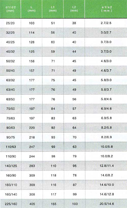 PPH偏心異徑管主要連接尺寸(連接方式,熱熔對焊)