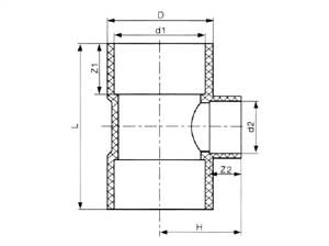 異徑三通PPH管主要連接尺寸(連接方式,熱熔承插)