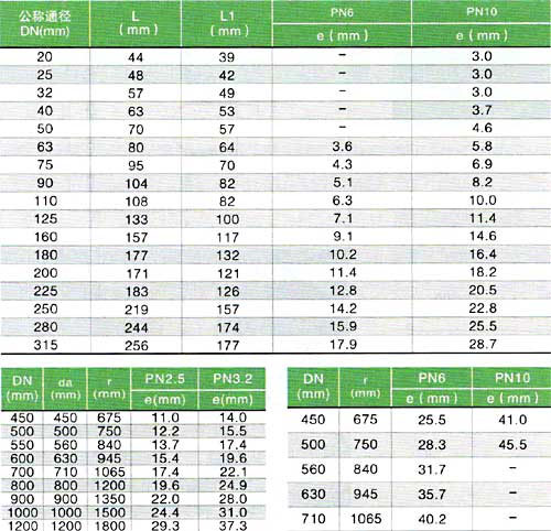 PPH管45°彎頭主要連接尺寸(連接方式,熱熔對(duì)焊)
