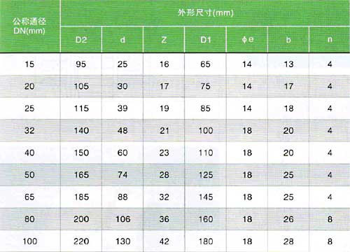 法蘭主要連接尺寸(連接方式,熱熔承插)